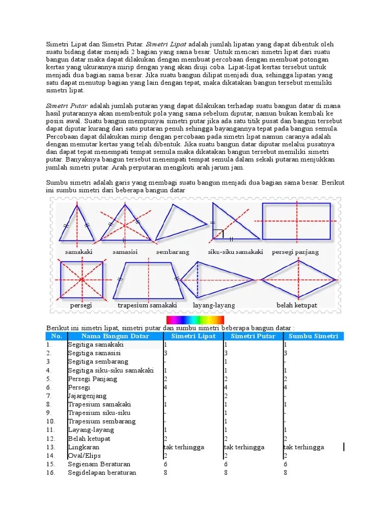 Simetri lipat dan simetri putar. Simetri lipat atau disebut juga dengan sumbu simetri adalah garis yang membagi bangun . Perhatikan contoh lain simetri putar pada persegi panjang dan segitiga sama kaki berikut. Berikut merupakan contoh soal materi pengukuran kelas 3 sd. Berikut merupakan contoh soal materi pengukuran kelas 3 sd.